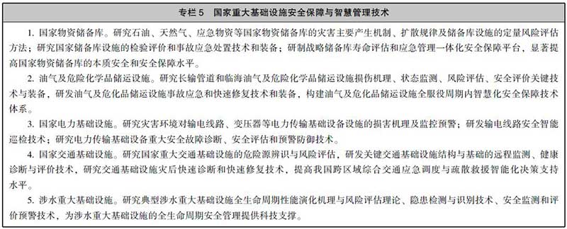 4.发展国家重大基础设施安全保障与智慧管理技术。